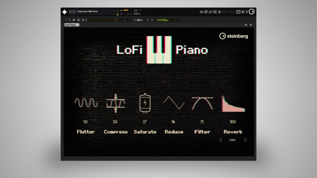 Um aus einem normalen Piano die Low Fidelity herauszukitzeln, braucht man natürlich die passenden Effekte, doch mit Flutter, Compress, Saturate, Reduce, Filter und Reverb ist das LoFi Piano ordentlich ausgestattet, um die typischen Tape-Sounds mit Tonband-Klangcharakteristik zu bilden.