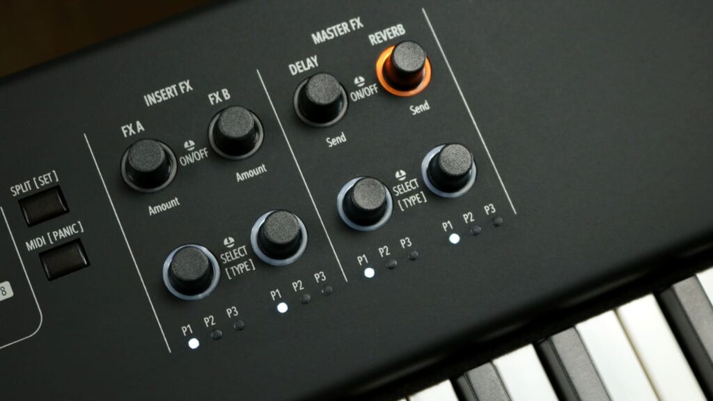 Die Klaviatur des Studiologic Numa X Piano 73 gehört zu den besten, die ich je gespielt habe. Sie bietet zwar keinen Ivory-Touch und besteht aus einfachem Plastik, aber das Spielgefühl und die Rückmeldung, die sie dem Pianisten liefert, sind sensationell. Die relativ neue Tastatur TP/110 von Fatar ist im Vergleich zur älteren Version TP/100LR offensichtlich nochmal deutlich besser geworden.
