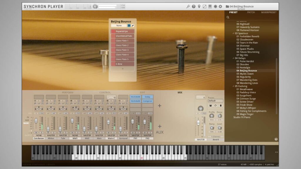 Das VSL Studio FX Piano wird im hauseigenen Vienna Synchron Player geladen, der neben einem eigenen Mixer zur weiteren Klanggestaltung auch mit über 20 Effekten und zahlreichen Filtern ausgestattet ist.