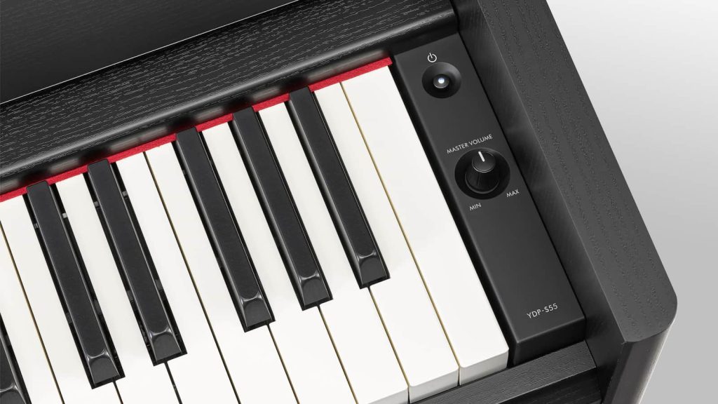 Arius YDP-S55 vs. YDP-S35: Dann käme aber auch das preiswertere und noch leicht kompaktere YDP-S35 in Frage, mit dem man etwa 300 Euro sparen kann. Es ist aber auch etwas einfacher ausgestattet: Das S35 kommt mit der „Graded Hammer Standard“-Tastatur – solide, aber man verzichtet auf beschichtete Decklagen und den dritten Sensor. Das Wiedergabesystem tönt bei geringerer Verstärkerleistung weniger vollmundig. Und die Frontblende für eine schönere Optik wurde eingespart.