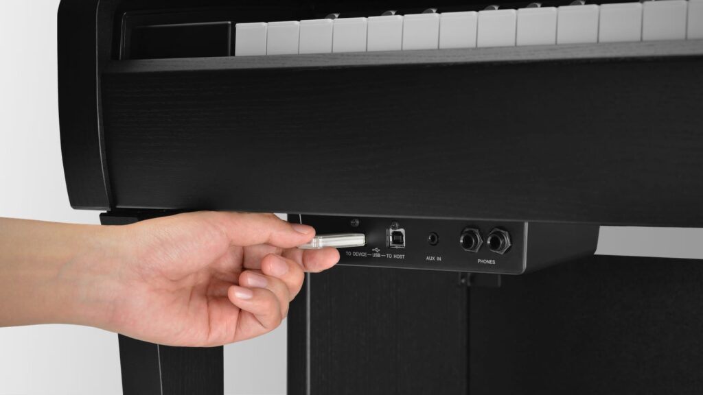 Standard-MIDI-Files sowie Audio-Songs im Wav-Format können Pianistinnen und Pianisten von einem USB-Stick oder vom Mobilgerät via App über die Pianolautsprecher wiedergeben lassen und natürlich selbst dazu spielen. Anders als der Vorgänger ist das CLP-835 dafür nun ab Werk schon ohne Adapter Bluetooth-fähig.